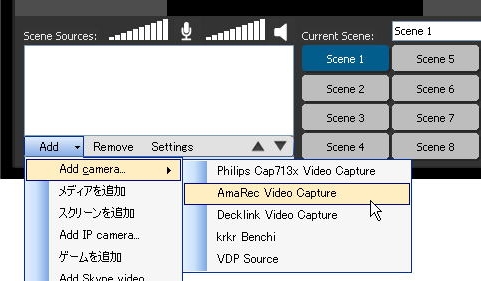 (4) 配信ソフトでAmaRec Video Captureを選択